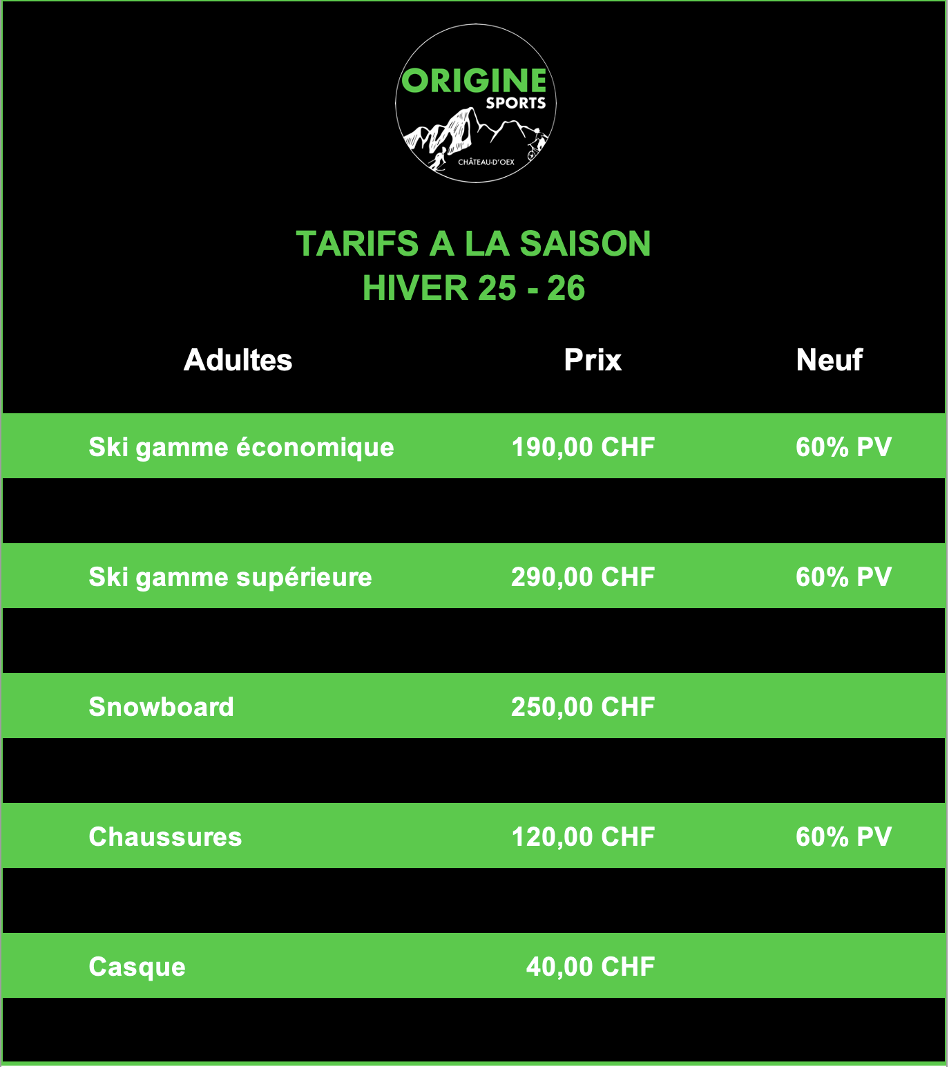 Origine Sports c’est votre nouveau magasin de sport quatre saisons à Château-d’Oex, Pays-d’Enhaut, dans les Alpes vaudoises.