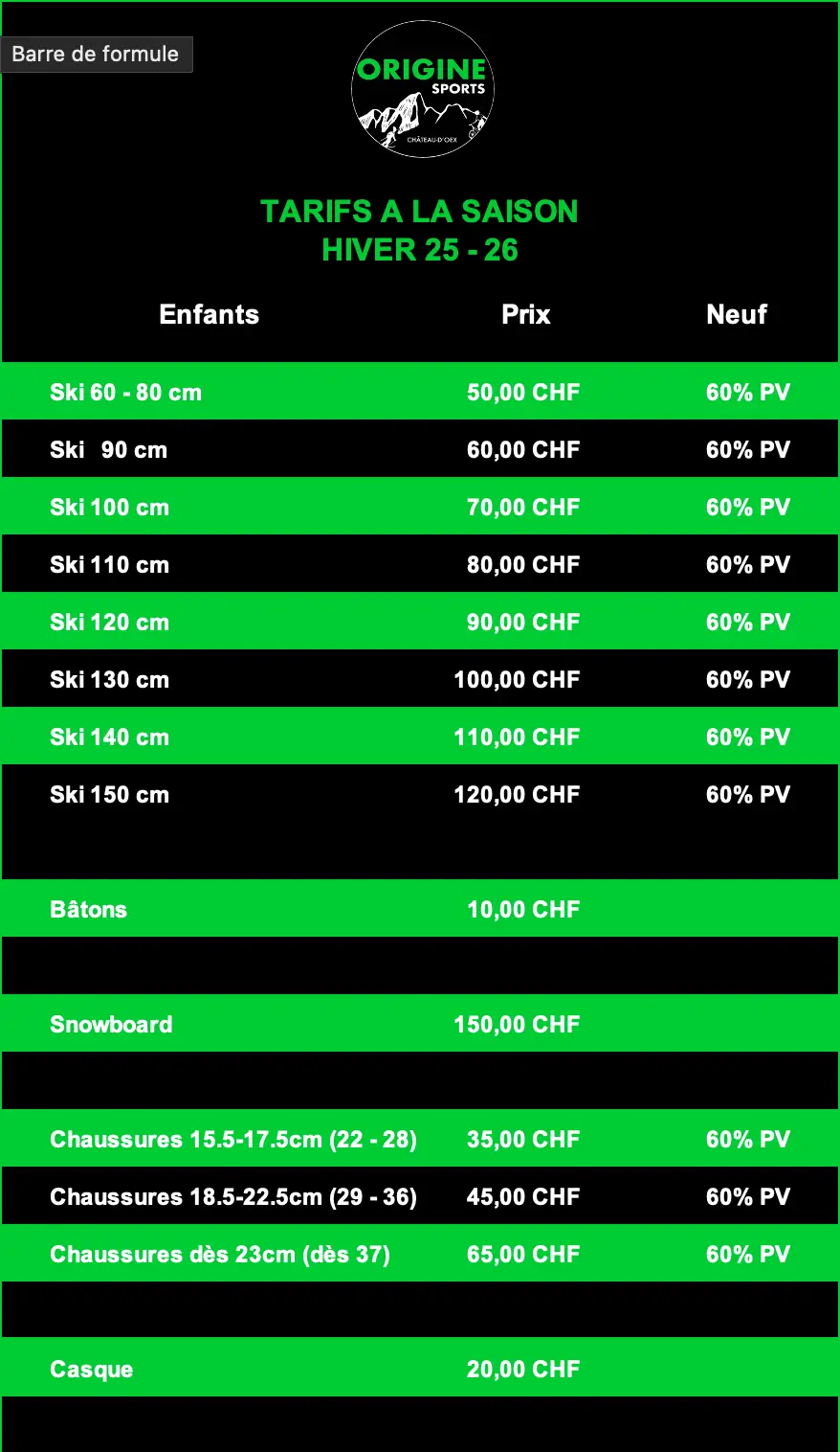 Vous trouverez chez Origine Sports tout le nécessaire pour passer un hiver magique au chaud ! Skis, snowboards, raquettes, luges, casques, combinaisons, polaires, sous-vêtements thermique et bien d’autres choses.